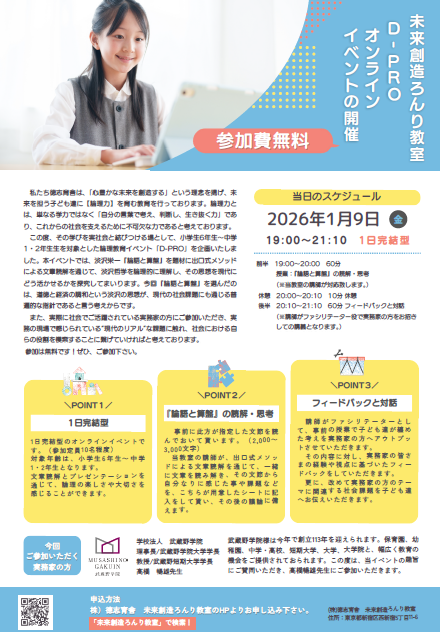 この度、未来創造ろんり教室では、小学6年生〜中学2年生を対象に、
